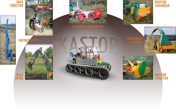 Mis au point en 2005, le Kastor II a été conçu pour pallier les défaillances du premier prototype. Il peut aller sur des terrains à faible portance grâce à son train de chenilles monté sur pneumatiques. Il peut aussi être équipé de 8 pneumatiques basse pression. Son dessin lui assure un équilibre des charges parfait avec des outils montés en position frontale. Sa puissance moteur lui permet d’entraîner des outils puissants.