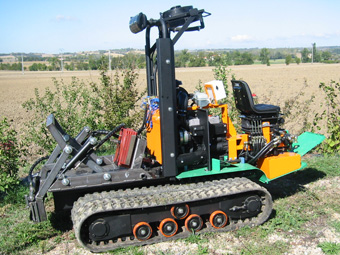 Adapté en 2003 à partir d’un tracteur vigneron, le Kastor jmh a été le premier prototype testé par la Scop SAGNE dès 2003. Petit, léger, sa largeur de chenille importante lui permet d’aller sur des terrains à faible portance.